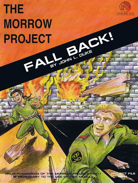 Fall Back! est prévu pour une équipe de PJ avec une solide expérience militaire. Il se passe en Caroline du Nord, et les persos doivent permettre à une base agronomique du Projet d’évacuer en bon ordre devant l’avancée d’une armée d’invasion venue du Kentucky (ce qui fait donc référence au cadre de Bullets & Bluegrass). Il manque très clairement dans ce module un certain nombre de plans et cartes, à commencer par une carte de la région.