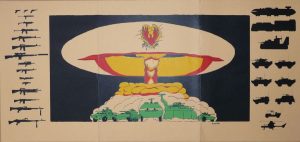 C’est un JdR post-cataclysmique sérieux, donc, conçu et publié au paroxysme de la Guerre Froide, à l’époque où on attendait que les Soviétiques et les Ricains nous fassent tout péter à coups de bombes atomiques, tout en espérant confusément que ça n’arrive pas. La Ruine y est donc due à une guerre nucléaire, qui a débuté le 18 novembre 1989 (le jeu prétend que c’était (ou plutôt, que ça serait) un jeudi, mais en réalité ça tombait un samedi). Les Américains détectent une attaque de missiles soviétiques et ripostent (sauf que c’était simplement un programme d’entraînement qui tournait sur leurs ordinateurs, et c’est donc eux qui ont ouvert les hostilités et pas les popovs…), l’escalade s’ensuit, et l’humanité plonge dans des âges sombres.