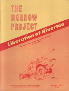 Le tout premier, Liberation at Riverton, est l’archétype du scénar d’intro au Morrow Project : les PJ se réveillent dans leur bolt hole, découvrent qu’un siècle et demi s’est écoulé au lieu de quelques années, partent à la découverte des environs, et se retrouvent pris dans un conflit local. Ici, la région (centrée sur la petite ville de Riverton, quelque part dans le nord du Midwest) est victime du racket et des exactions d’un groupe armé, et il est prévu que les persos s’occupent dudit groupe.
