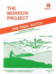 J’avais découvert The Morrow Project en 1984, dans le dossier sur La S.F. et ses jeux de Jeux & Stratégie n° 26, où il était présenté sur la même page qu’Aftermath! (qui m’attirait beaucoup plus l’œil) ; puis par l’article de trois pages qui lui avait été consacré dans Casus Belli n° 30 (décembre 1985) (article signé Frédéric Mora, un nom qui ne me dit strictement rien ; je suppose qu’il n’a pas écrit grand-chose d’autre dans les colonnes de CB ; à moins que ce ne soit un pseudo). Mais en dehors de ces deux articles (et du pavé de Chroniques d’Outre-Monde n° 3 sur les JdR post-cata, où il avait droit à la présentation la plus longue), le jeu n’avait guère eu les honneurs des pages de la presse spécialisée francophone, et il est resté relativement méconnu chez nous. Injustement méconnu, donc.