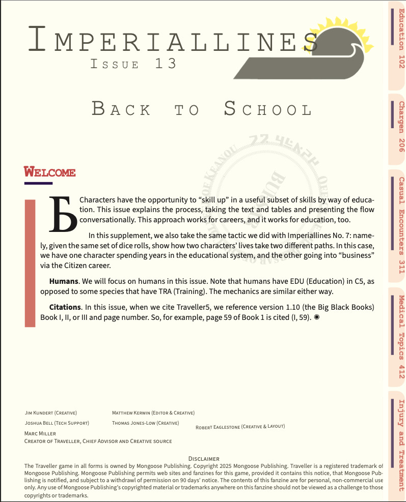 Derniers numéros parus de la revue *.pdf officielle pour Traveller5 (pour l’époque 1900 après la fondation du Troisième Imperium)